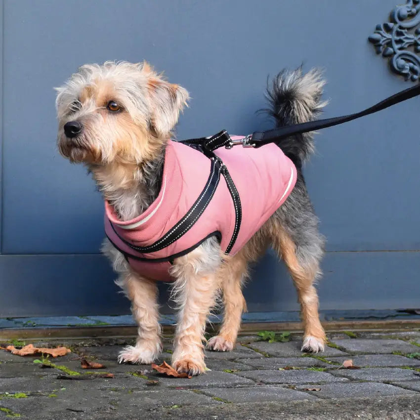 Abrigo para perro con arnés integrado y detalles reflectantes