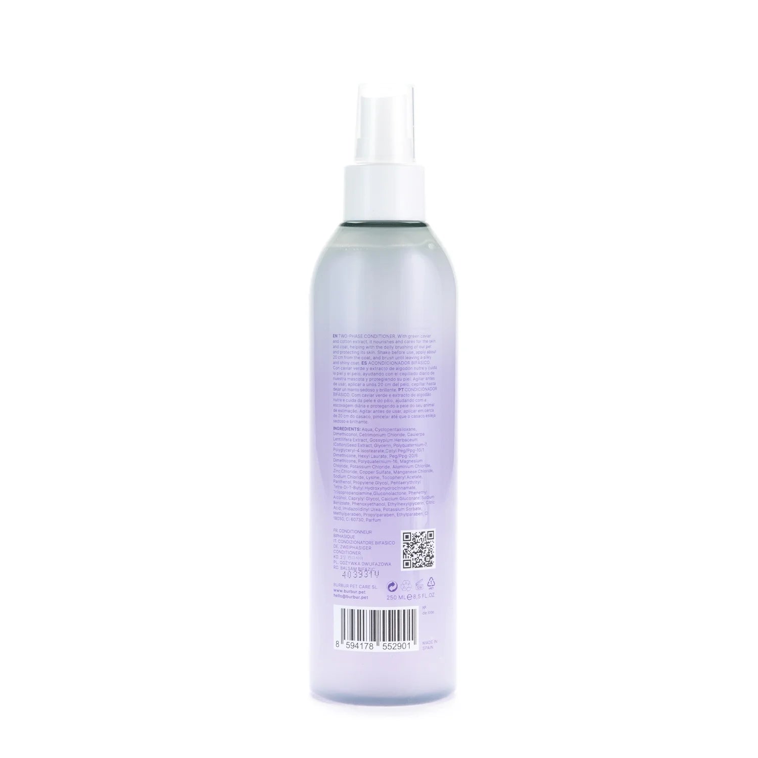 MODO DE EMPLEO: Agitar antes de usar, aplicar a unos 20 cm del pelo, cepillar hasta dejar un manto sedoso y brillante.