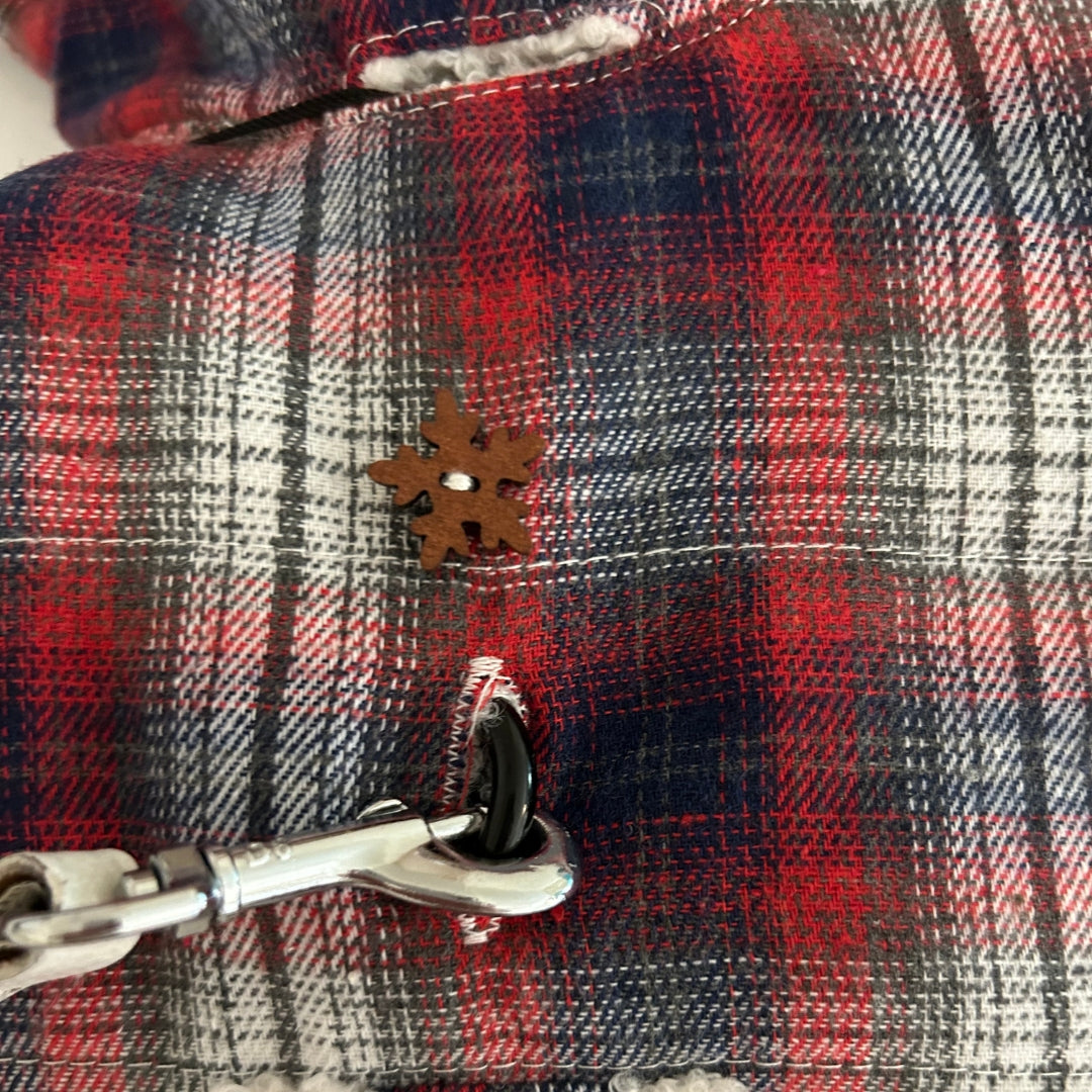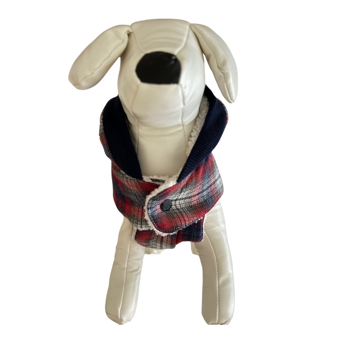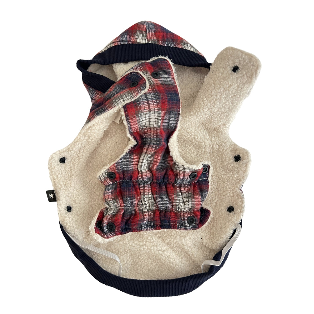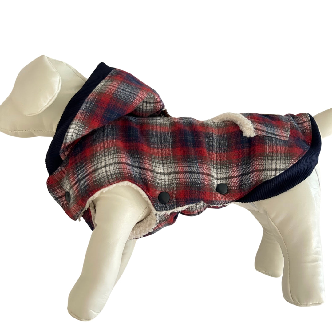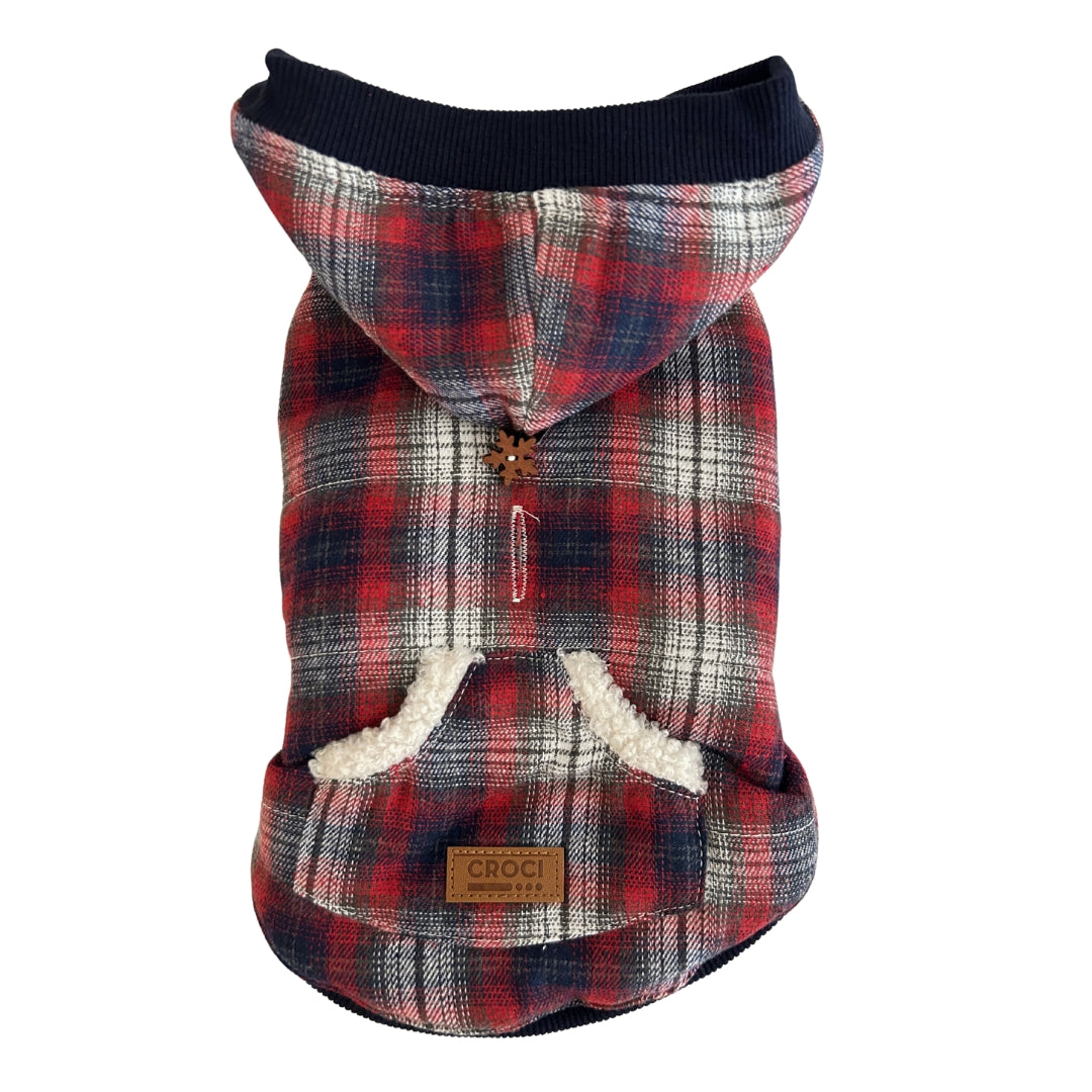 Abrigo tipo sudadera escocesa, con forro interior de tela cálida de borreguito, ideal para mantener a tu mascota abrigada todo el invierno.