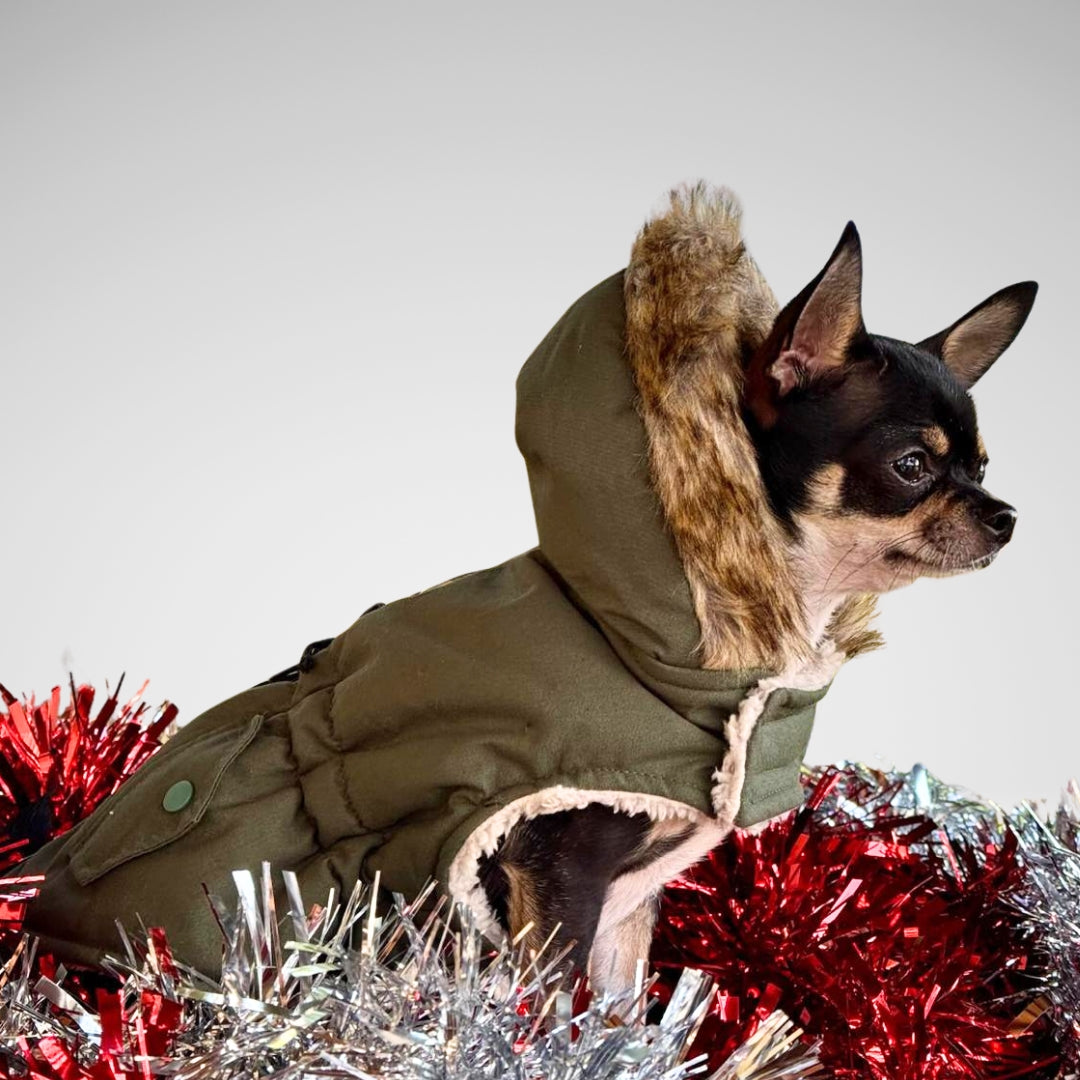 Además, es resistente al agua, protegiendo a tu amigo peludo de las salpicaduras y la humedad en días de lluvia o nieve. Incluye detalles funcionales como una capucha, una correa ventral ajustable para mayor confort, y aberturas para el collar y accesorios, permitiendo que siempre esté listo para paseos sin complicaciones.