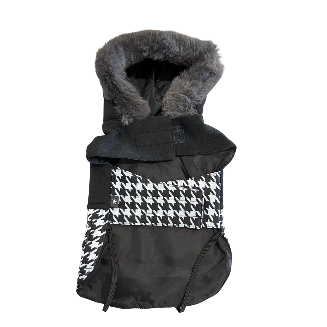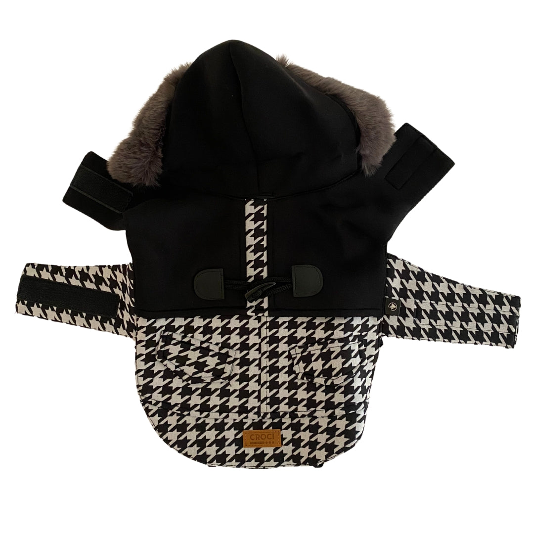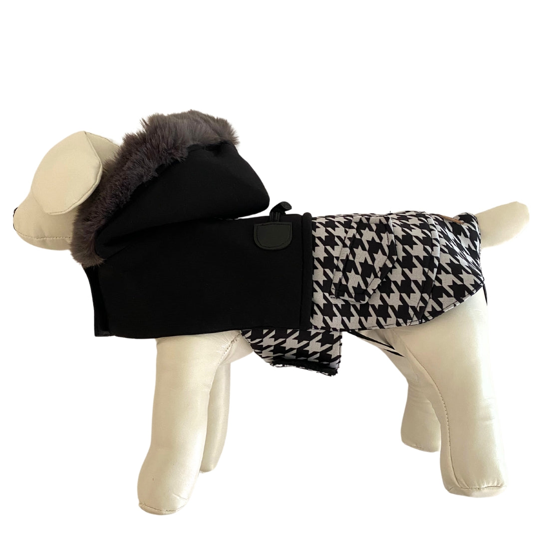 Exclusivo abrigo de diseño italiano. Completamente impermeable en el exterior y con relleno de pelo vegano de alta calidad.