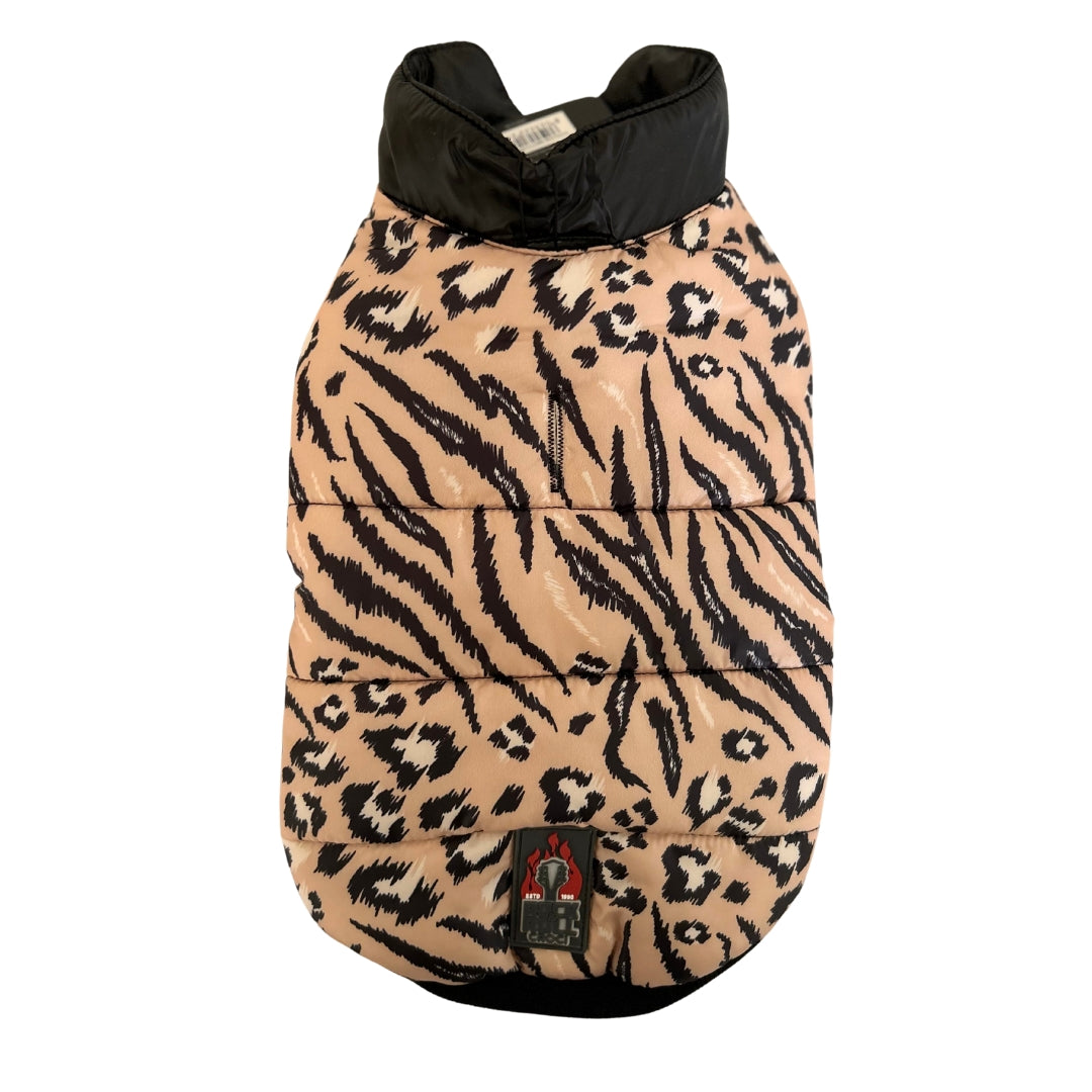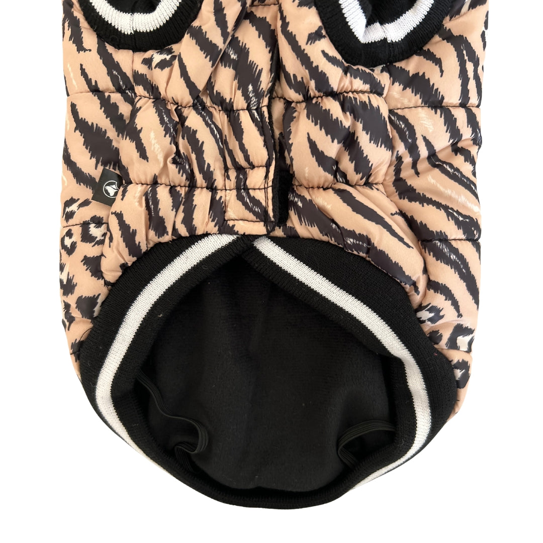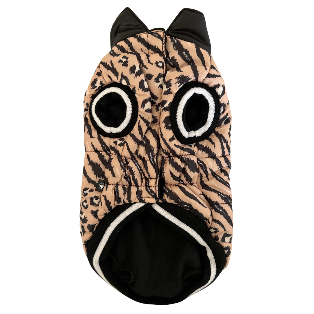 La chaqueta para perros Animalier está confeccionada con tela de nylon impermeable hecha especialmente con un maravilloso estampado animal.
