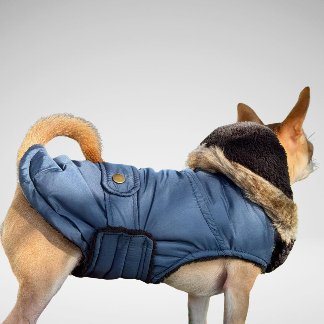 Además, es resistente al agua, protegiendo a tu amigo peludo de las salpicaduras y la humedad en días de lluvia o nieve. Incluye detalles funcionales como una capucha, una correa ventral ajustable para mayor confort, y aberturas para el collar y accesorios, permitiendo que siempre esté listo para paseos sin complicaciones.