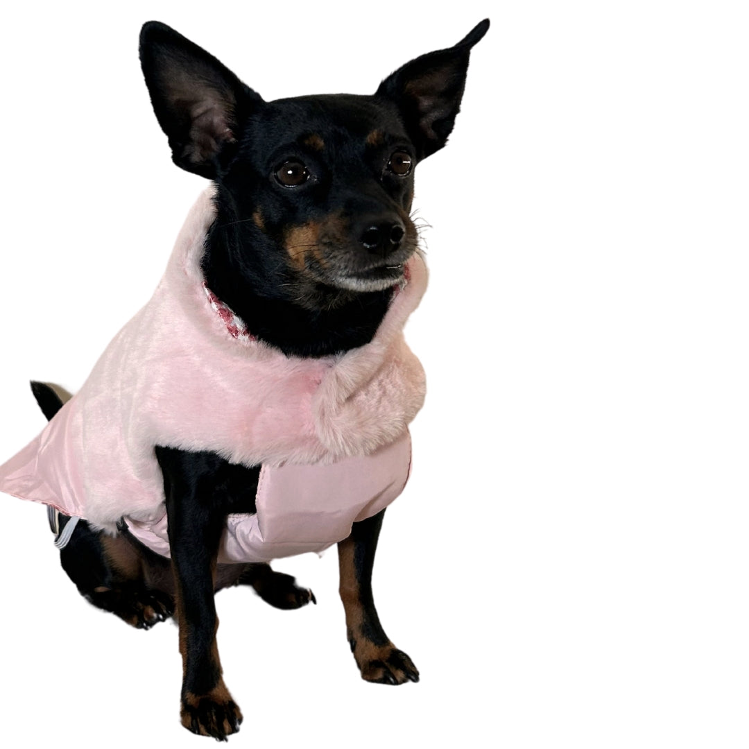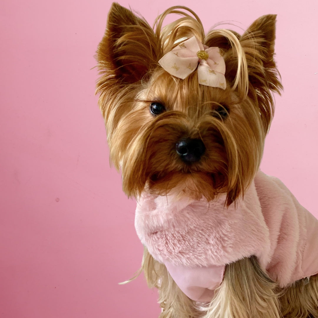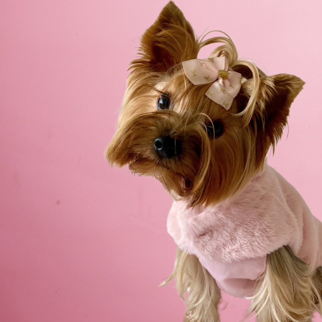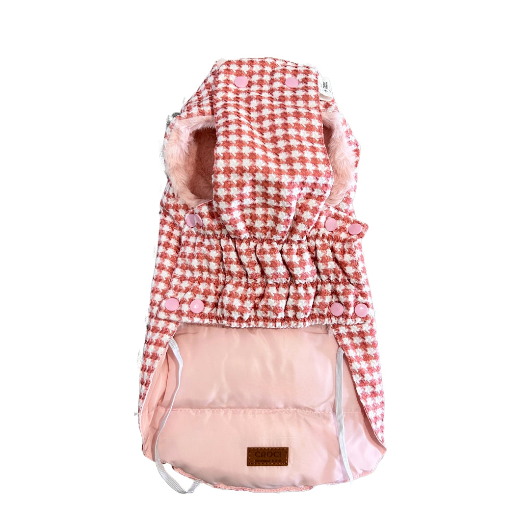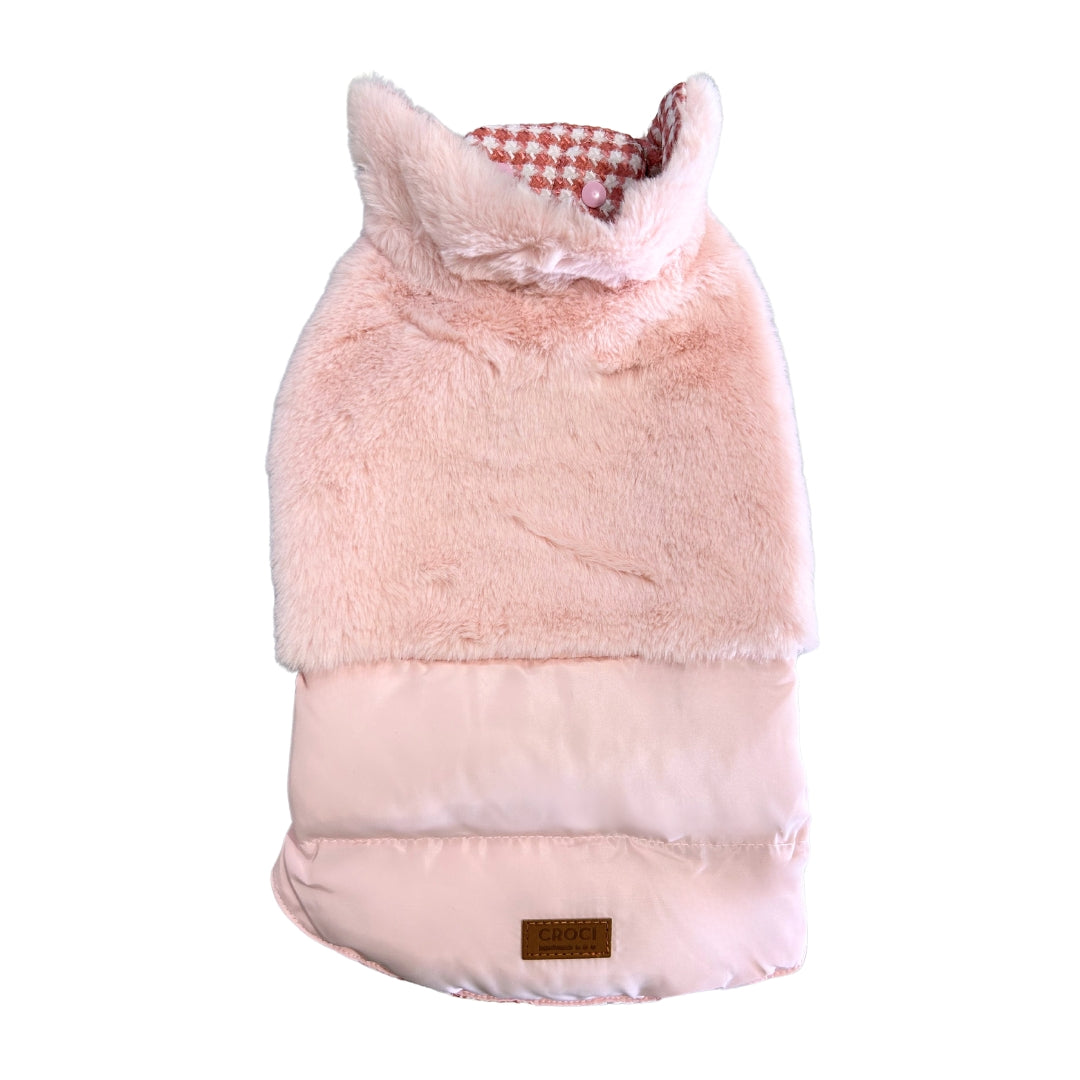 Gracias al tejido de doble cara, es posible crear dos looks maravillosos, por un lado, un tejido cubierto con piel sintética rosa supersuave y, por otro, un elegante tejido de tweed de pata de gallo rosa antiguo.