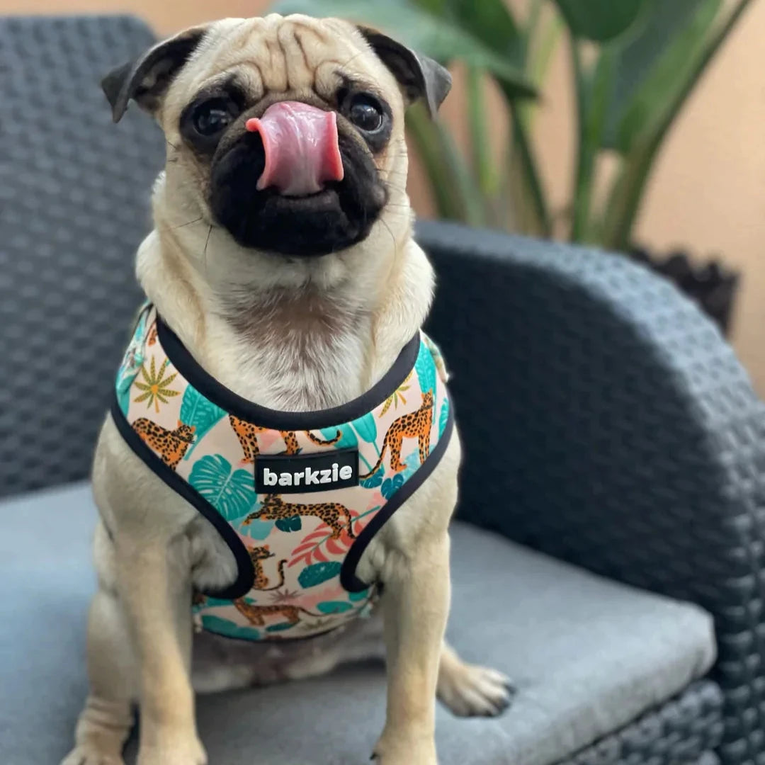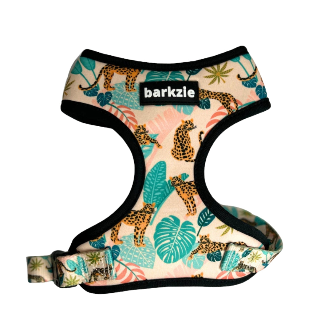 El arnés que se ajusta a la perfección al cuerpo de tu perro. Espectacular estampado animal print y calidades superiores.
