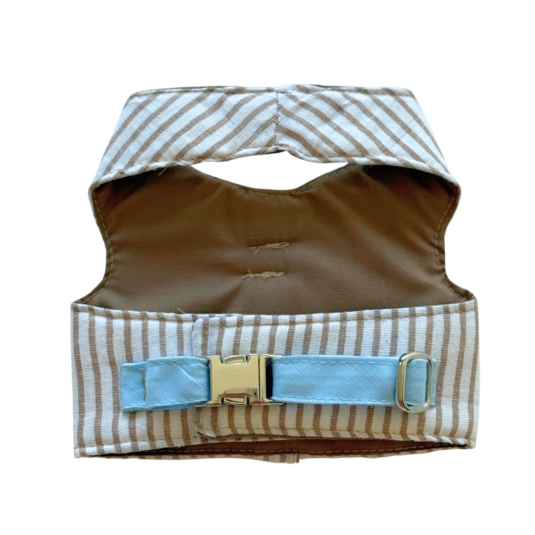 Arnés tipo chaleco realizado en delicado lino, de nuestra colección HERITAGE by The Pet Atelier, hecho a mano en España en edición limitada.