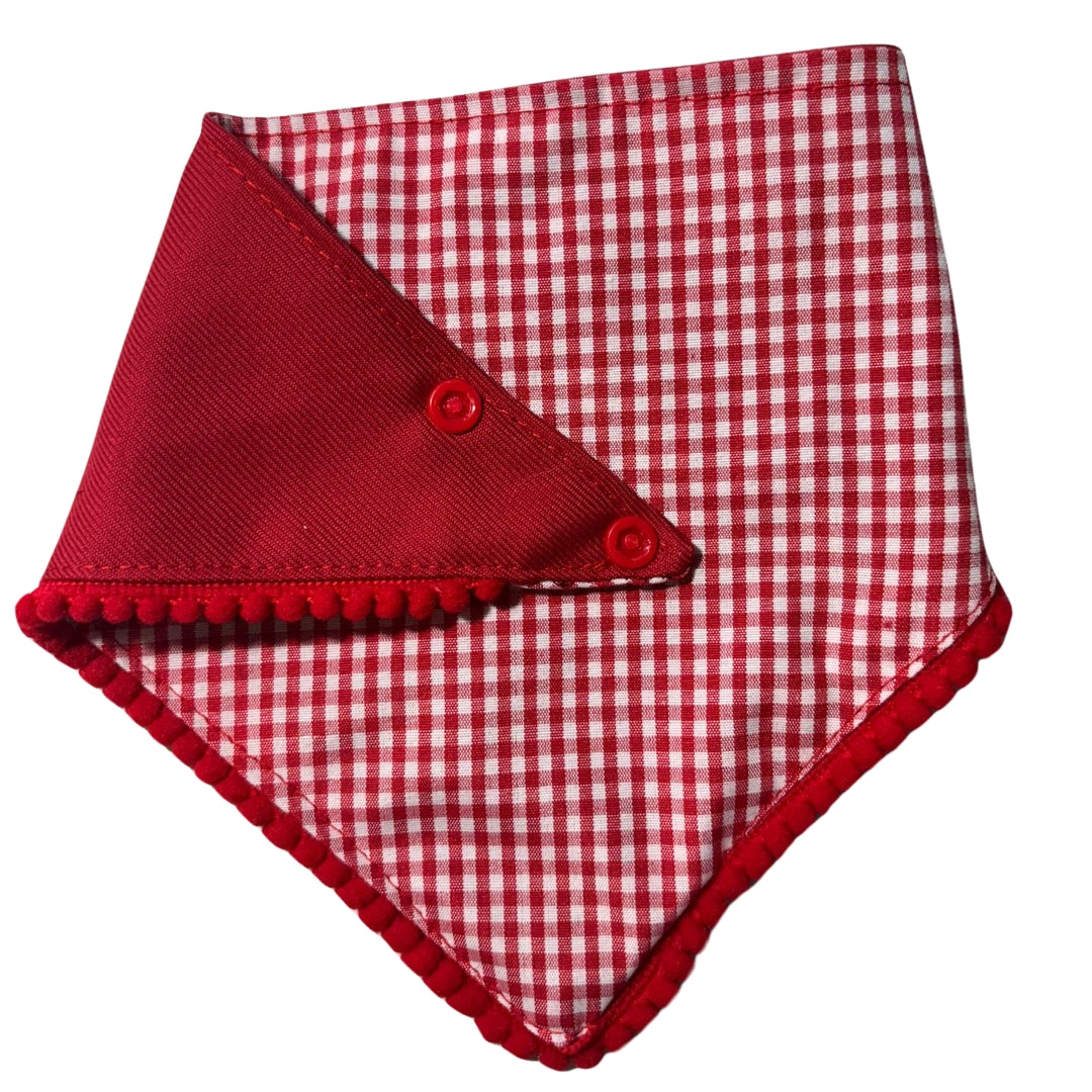 Ideal bandana reversible rojo vichy, adaptable con botones de presión y detalle charm corazón
