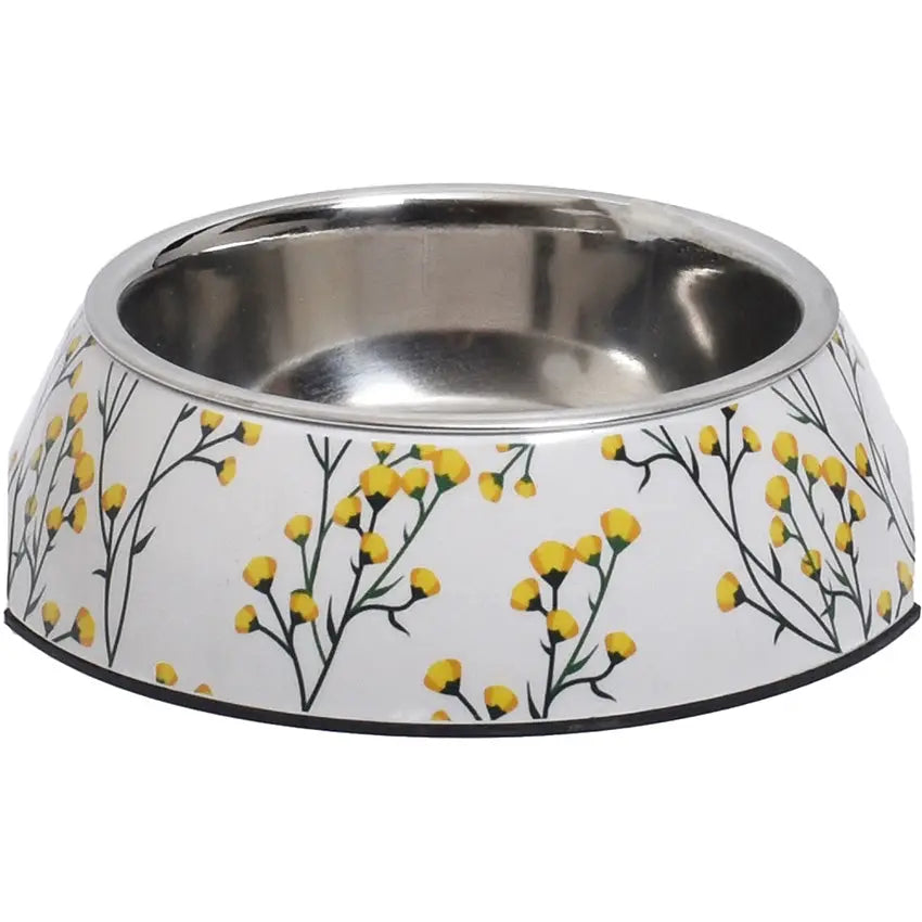 Materiales de alta calidad: La melamina proporciona una base sólida y duradera, mientras que el cuenco de acero inoxidable asegura un entorno limpio y seguro para el alimento y el agua.