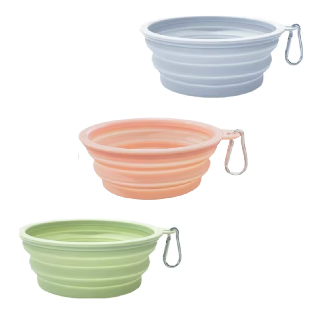 Cuenco plegable para agua o comida con mosquetón para mayor comodidad