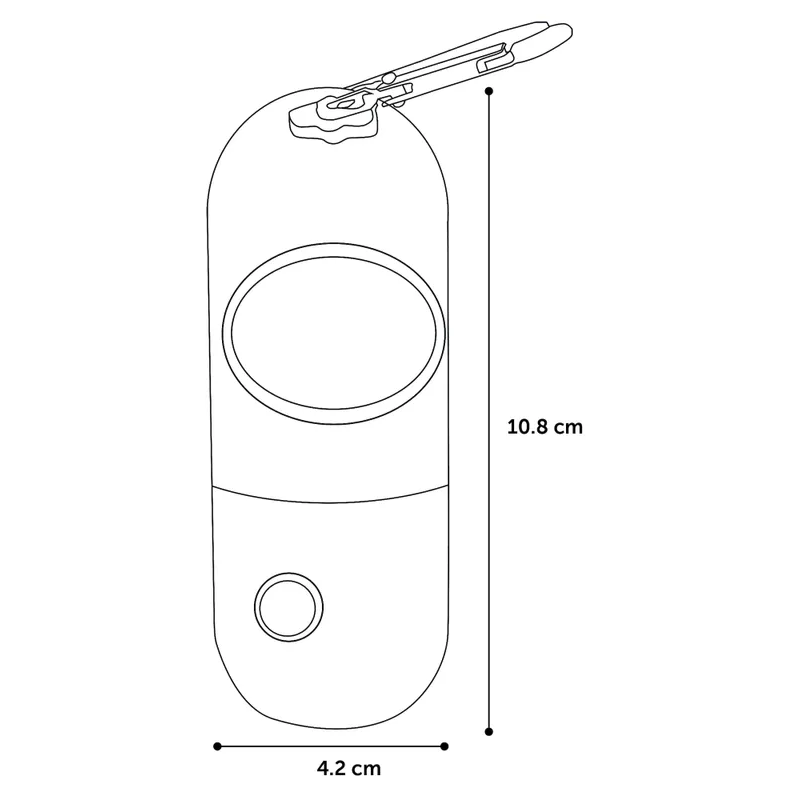 Dispensador de bolsas con luz LED incorporada, en práctico formato con mosquetón para colgar a la correa.
