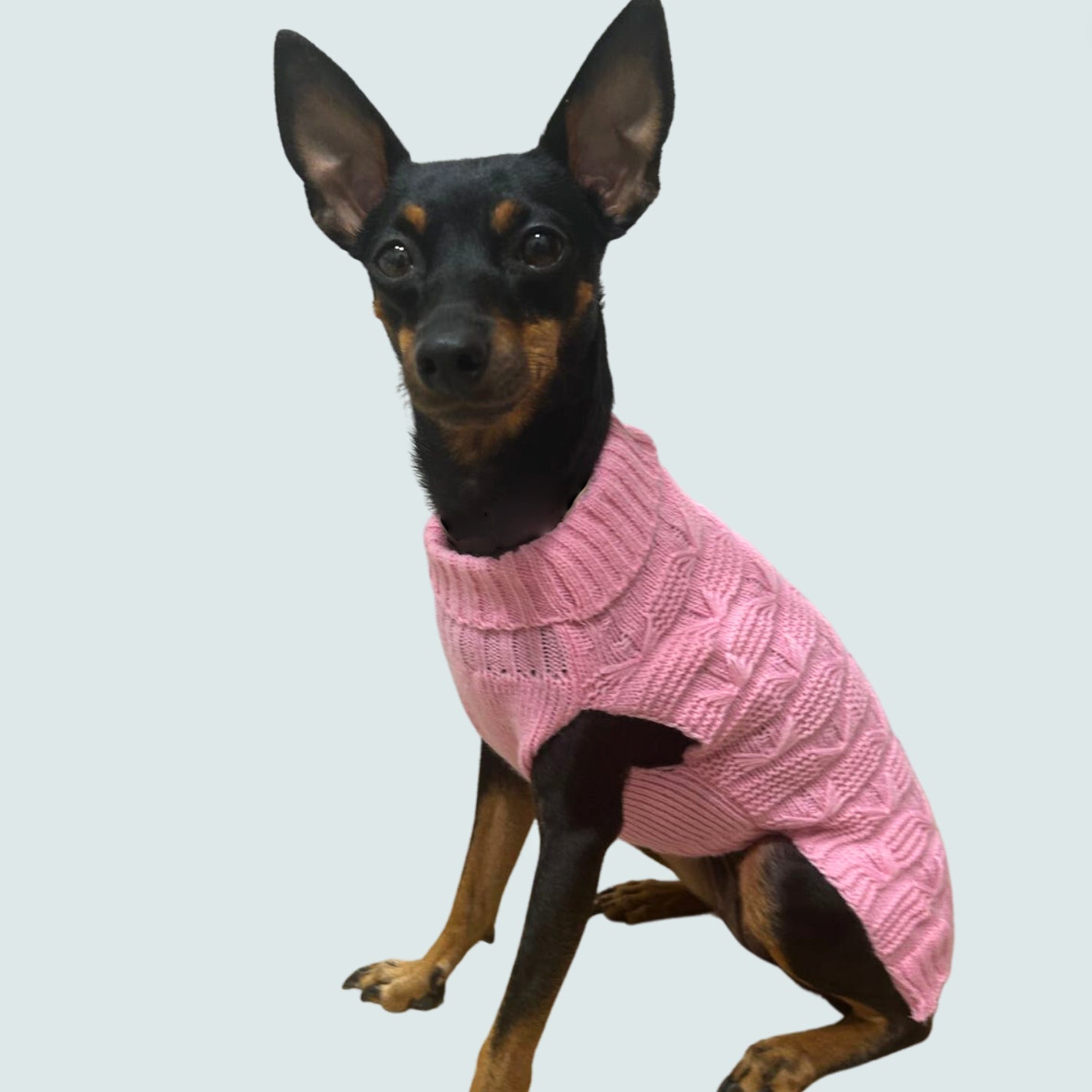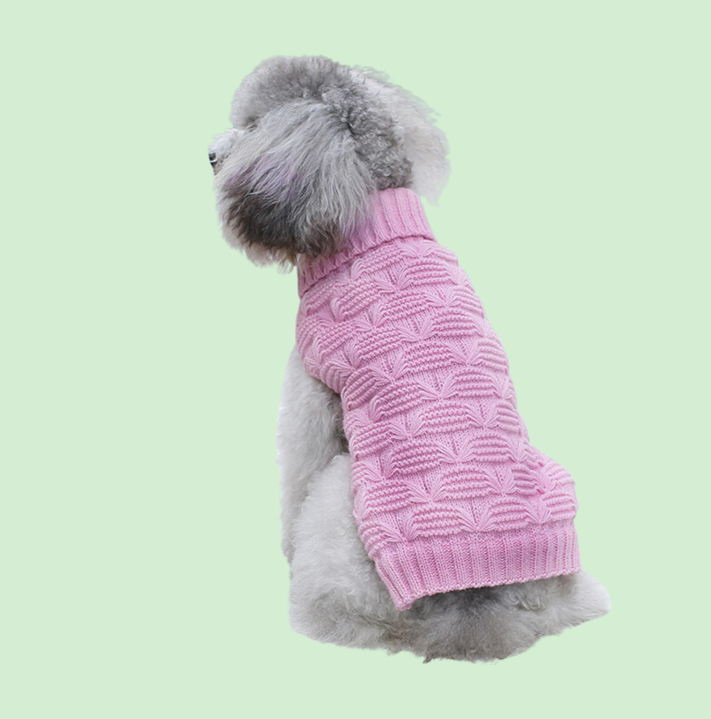 Jersey de punto cálido con cuello alto para perros pequeños. Hecho de material de fibras acrílicas de calidad, transpirable y muy suave. Tiene una buena elasticidad y fácil de poner.